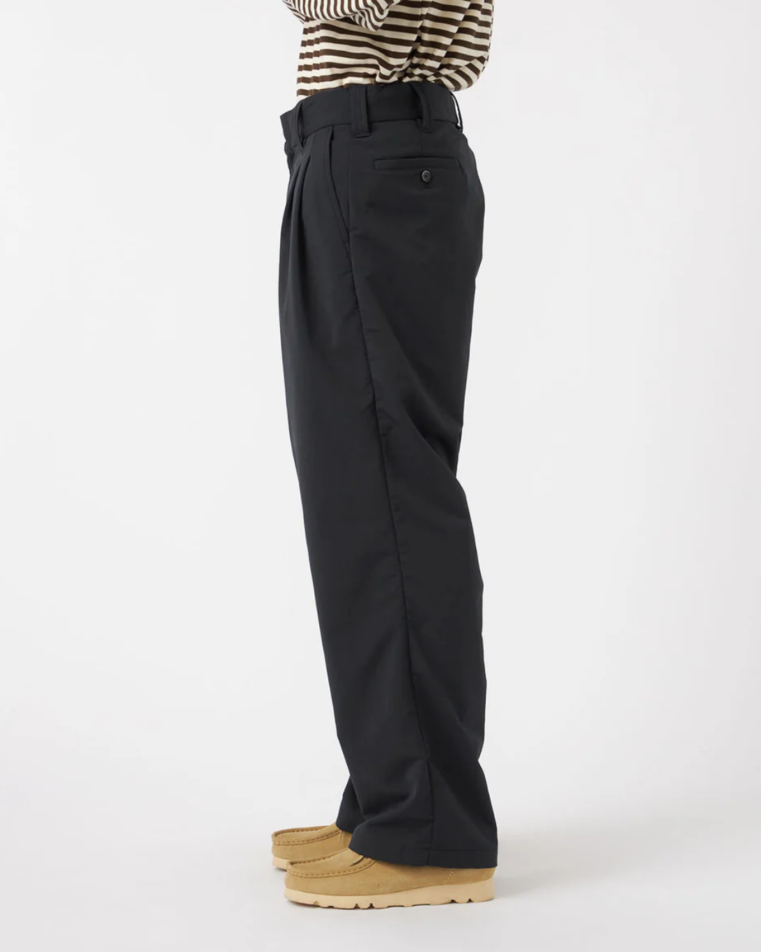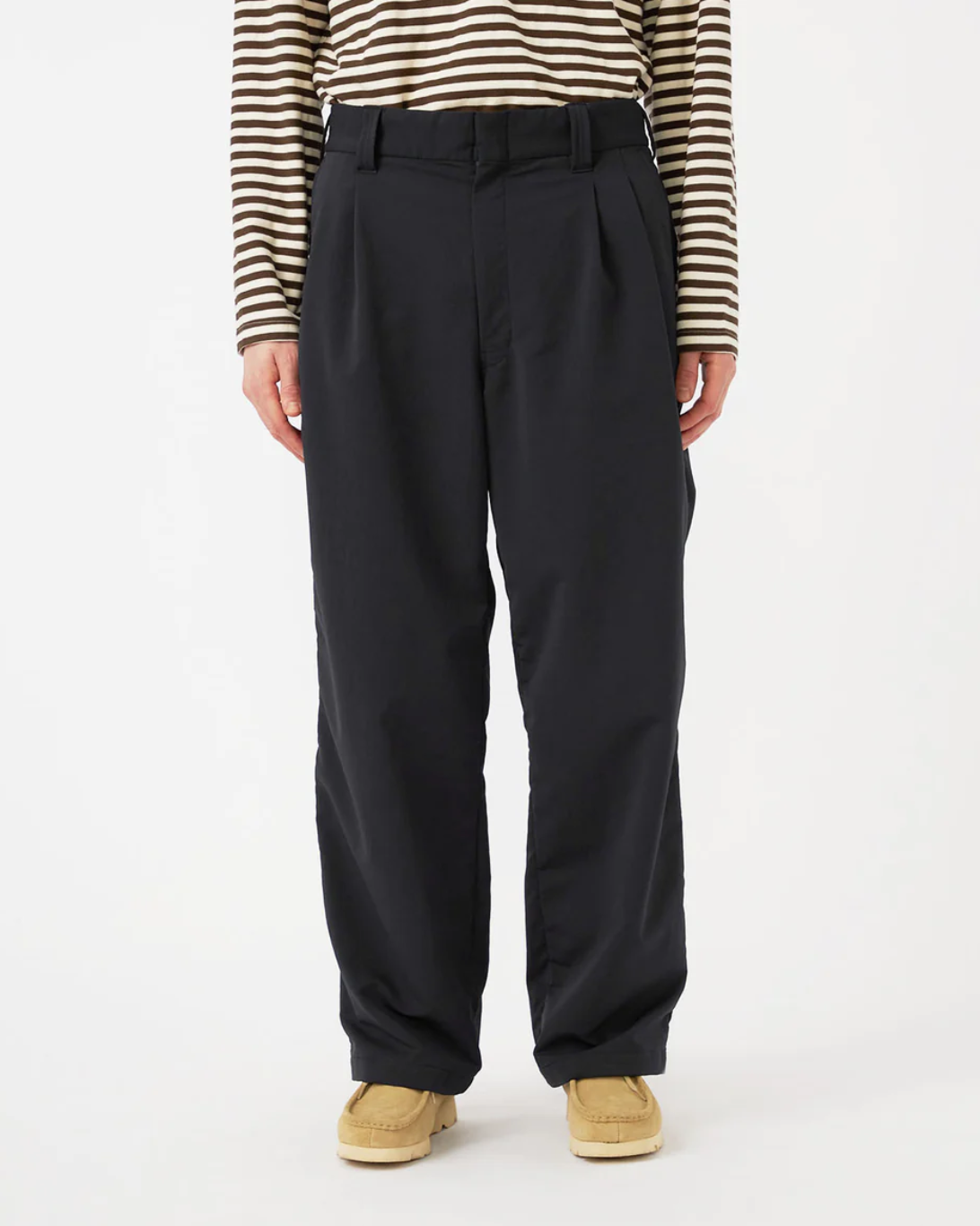 Designed with comfort and movement in mind, these wide, straight-cut pants are made with ALPHADRY®—a high-performance fabric offering moisture-wicking, quick-drying, and stretch properties. Featuring a clean two-tuck design, they’re finished with a front zipper opening, an interior drawcord at the waistband for a customizable fit, and an inseam gusset that enhances mobility.