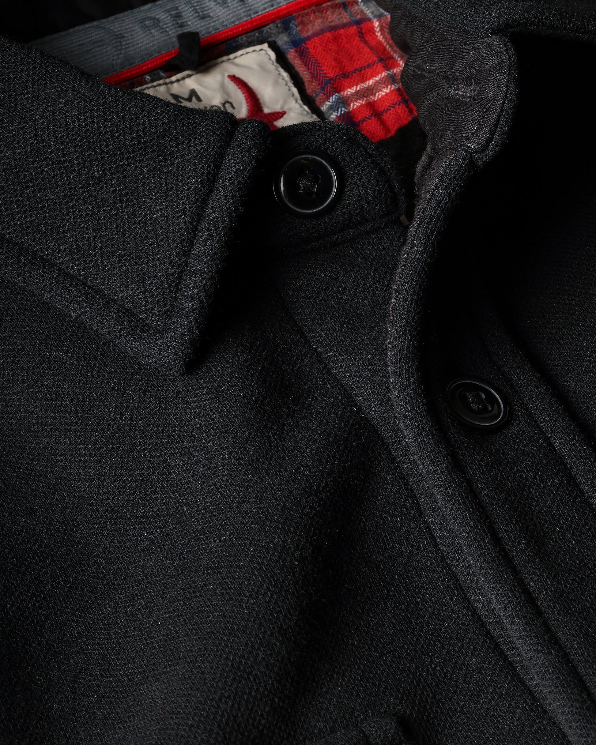 Gutsy knit overshirts are not commonplace and made even more unique by mating a cotton pique face with a sheared synthetic micropile at the backside. The result is a formidable piece of cold-weather protection that provides rugged warmth and movement due to its knit construction. Classic fit. content: 70% cttn, 30% poly pique face w/ soft-brushed 100% poly velour bonded backside