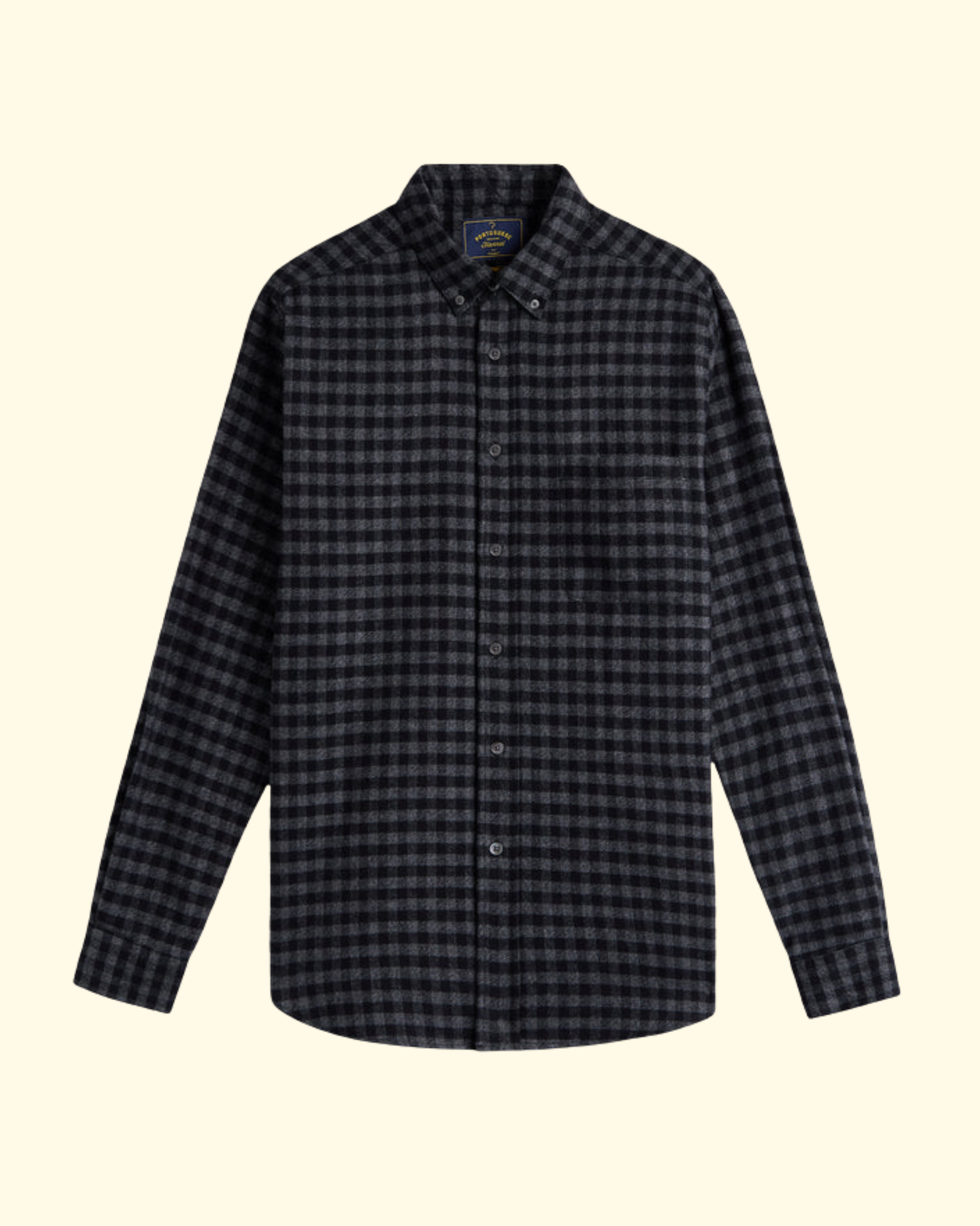 100% cotton long sleeve button down with shell of mother pearl buttons.