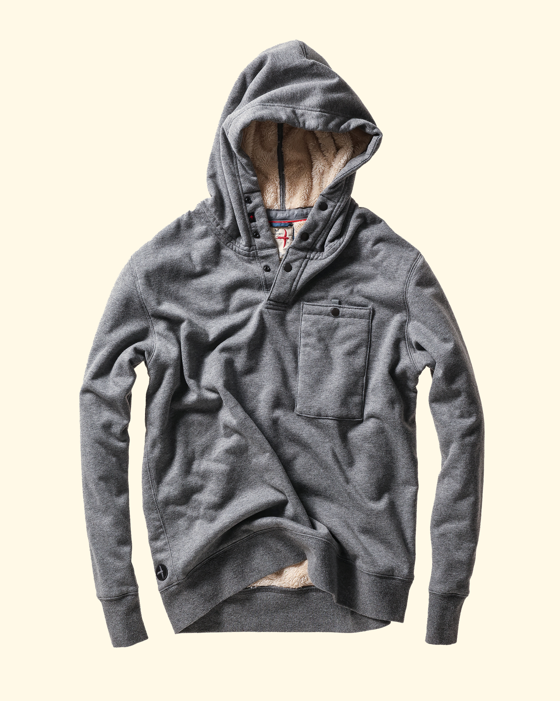 Cotton jersey face with lightweight shaggy pile backside, our iconic Hoodie in superfleece exudes great body and pliancy. Wear over a woven shirt with one snap closed and half-tucked at the waist for an unexpectedly refined look…because anyone can dress a hoodie down. Content: 100% cotton jersey face w/ lightweight sherpa 100% poly bonded backside. Classic fit.