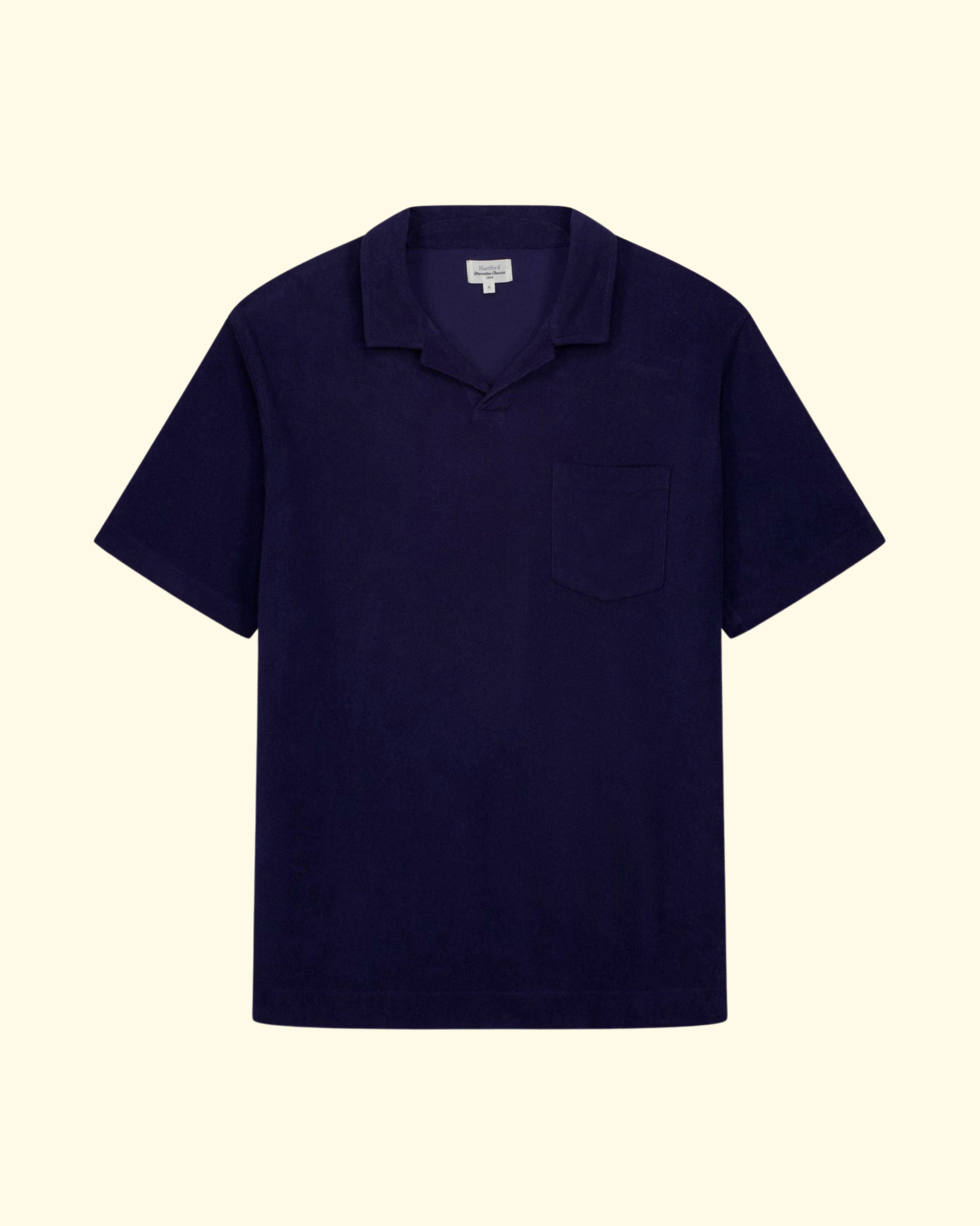 The navy blue Terry polo reimagines a classic summer staple with a relaxed, contemporary spirit. Knitted from plush, double-sided cotton terry, it feels soft and slightly fluffy against the skin thanks to its looped texture, making it especially comfortable in warm weather and ideal for casual weekends or beachside days. Garment-dyed for a subtly washed, lived-in hue that will evolve beautifully over time, this polo features an open collar and short sleeves that keep the look laid-back but thoughtful. A chest pocket and relaxed silhouette add to its easygoing charm, while quality craftsmanship from Portugal ensures enduring appeal and versatility with everything from linen trousers to everyday denim.