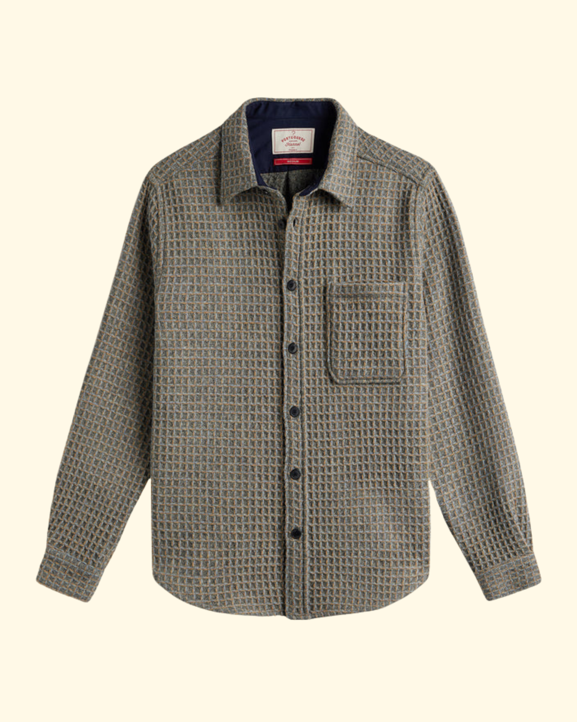 100% wool long sleeve button down with recycled polyester buttons